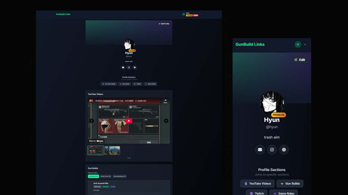 Built a comprehensive biolink system for gamers to share their gun builds (Mainly in Delta Force) and share their content and promote their identity.